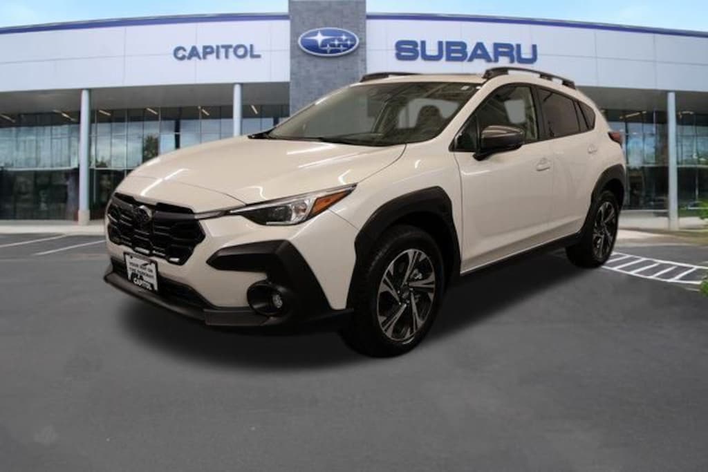 We Buy cars- Fast, Fair and Easy This 2024 Crystal White Pearl Subaru Crosstrek Premium AWD is well equipped and includes these features and benefits: All-Weather Package (Heated Exterior Mirrors, Heated Front Seats, and Heated Wipers), BSD/RCTA & Moonrf & All Weather Pkg & Pwr Dr. Seat (10-Way Power Driver's Seat, Blind Spot Detection w/Rear Cross-Traffic Alert, and Power Moonroof), Subaru Certified, 3.90 Axle Ratio, 4-Wheel Disc Brakes, 6 Speakers, ABS brakes, Air Conditioning, All-Weather Floor Liners, Alloy wheels, AM/FM radio: SiriusXM, Anti-whiplash front head restraints, Auto High-beam Headlights, Automatic temperature control, Brake assist, Bumpers: body-color, Cargo Cover, Driver door bin, Driver vanity mirror, Dual front impact airbags, Dual front side impact airbags, Electronic Stability Control, Emergency communication system: STARLINK Safety and Security (Subscription Required), Exterior Parking Camera Rear, Four wheel independent suspension, Front anti-roll bar, Front Bucket Seats, Front Center Armrest, Front dual zone A/C, Front fog lights, Front reading lights, Fully automatic headlights, Illuminated entry, Knee airbag, Low tire pressure warning, Occupant sensing airbag, Outside temperature display, Overhead airbag, Overhead console, Panic alarm, Passenger door bin, Passenger vanity mirror, Power door mirrors, Power steering, Power windows, Premium Cloth Upholstery, Radio data system, Radio: Subaru STARLINK 11.6" Multimedia Plus Sys, Rear anti-roll bar, Rear seat center armrest, Rear window defroster, Rear window wiper, Remote keyless entry, Security system, Speed control, Speed-sensing steering, Split folding rear seat, Spoiler, STARLINK/Apple CarPlay/Android Auto, Steering wheel mounted audio controls, Tachometer, Telescoping steering wheel, Tilt steering wheel, Traction control, Trip computer, Turn signal indicator mirrors, Variably intermittent wipers, and Wheels: 17" x 7.0J Dark Gray Aluminum Alloy.