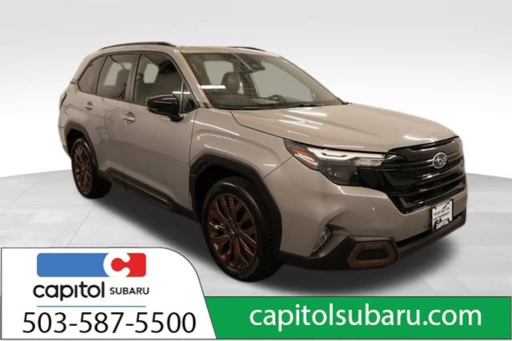We Buy cars- Fast, Fair and Easy This 2025 River Rock Pearl Subaru Forester Sport AWD is well equipped and includes these features and benefits: harman/kardon Audio & Power Rear Gate & RAB (harman/kardon Speaker System, Power Rear Gate, and Reverse Automatic Braking (RAB) System), Popular Package #1 (Auto-Dimming Exterior Mirror w/Approach Light, Auto-Dimming Mirror w/Compass & HomeLink, Cargo Tray, and Rear Bumper Cover), Subaru Certified, 4-Wheel Disc Brakes, 6 Speakers, ABS brakes, Air Conditioning, All-Weather Floor Liners, Alloy wheels, AM/FM radio: SiriusXM with 360L, Anti-whiplash front head restraints, Auto High-beam Headlights, Automatic temperature control, Brake assist, Bumpers: body-color, Driver door bin, Driver vanity mirror, Dual front impact airbags, Dual front side impact airbags, Electronic Stability Control, Emergency communication system: MySubaru Safety (3-year free trial), Exterior Parking Camera Rear, Four wheel independent suspension, Front anti-roll bar, Front Bucket Seats, Front Center Armrest, Front dual zone A/C, Front fog lights, Front reading lights, Fully automatic headlights, Heated door mirrors, Heated Front Bucket Seats, Heated front seats, Illuminated entry, Knee airbag, Leather steering wheel, Low tire pressure warning, Occupant sensing airbag, Outside temperature display, Overhead airbag, Overhead console, Panic alarm, Passenger door bin, Passenger vanity mirror, Power door mirrors, Power driver seat, Power moonroof: Panoramic, Power steering, Power windows, Radio data system, Radio: Subaru 11.6" Multimedia Plus System, Rear anti-roll bar, Rear seat center armrest, Rear window defroster, Rear window wiper, Remote keyless entry, Security system, Speed control, Speed-sensing steering, Split folding rear seat, Spoiler, Sport StarTex Upholstery, Steering wheel mounted audio controls, Tachometer, Telescoping steering wheel, Tilt steering wheel, Traction control, Trip computer, Turn signal indicator mirrors, Variably intermittent wipers, and Wheels: 19" x 7.5 J Bronze Finish Aluminum-Alloy.
