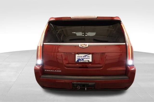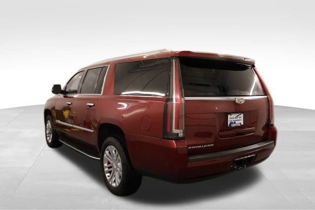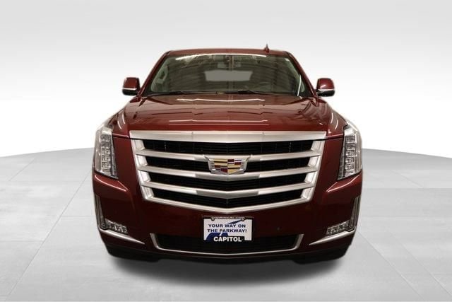 We Buy cars- Fast, Fair and Easy This 2018 Red Passion Tintcoat Cadillac Escalade ESV 4WD is well equipped and includes these features and benefits: Preferred Equipment Group 1SA, 16 Speakers, 3.23 Axle Ratio, 3rd row seats: split-bench, 4-Wheel Disc Brakes, ABS brakes, Adaptive suspension, Adjustable pedals, Air Conditioning, All-Weather 1st, 2nd & 3rd Row Floor Mats (LPO), Alloy wheels, AM/FM radio: SiriusXM, Apple CarPlay/Android Auto, Auto tilt-away steering wheel, Auto-dimming door mirrors, Auto-dimming Rear-View mirror, Auto-leveling suspension, Automatic temperature control, Black Front License Plate Bracket, Bodyside moldings, Bose Centerpoint 16 Speaker Surround Sound System, Brake assist, Bumpers: body-color, CD player, Chrome wheels, Compass, Delay-off headlights, Driver door bin, Driver vanity mirror, Dual front impact airbags, Dual front side impact airbags, DVD-Audio, Electronic Stability Control, Emergency communication system: OnStar and Cadillac connected services capable, Exterior Parking Camera Rear, Front anti-roll bar, Front Bucket Seats, Front Center Armrest w/Storage, Front dual zone A/C, Front Passenger 12-Way Power Seat Adjuster, Front reading lights, Front wheel independent suspension, Garage door transmitter, HD Radio, Heated & Cooled Front Seats, Heated door mirrors, Heated front seats, Heated rear seats, Heated steering wheel, Illuminated entry, Leather Seating Surfaces, Leather Shift Knob, Leather steering wheel, Low tire pressure warning, Magnetic Ride Control Suspension, Memory seat, Navigation System, Occupant sensing airbag, Outside temperature display, Overhead airbag, Overhead console, Panic alarm, Passenger door bin, Passenger vanity mirror, Pedal memory, Power door mirrors, Power driver seat, Power Liftgate, Power passenger seat, Power steering, Power windows, Radio data system, Radio: AM/FM Cadillac User Experience w/Nav, Rain sensing wipers, Rear air conditioning, Rear anti-roll bar, Rear audio controls, Rear reading lights, Rear window defroster, Rear window wiper, Remote keyless entry, Roof rack: rails only, Security system, Single Slot CD/MP3 Player, SiriusXM NavTraffic, SiriusXM Satellite Radio, Speed control, Split folding rear seat, Spoiler, Steering wheel memory, Steering wheel mounted audio controls, Tachometer, Telescoping steering wheel, Tilt steering wheel, Traction control, Trip computer, Turn signal indicator mirrors, Variably intermittent wipers, Ventilated front seats, and Wheels: 20 x 9 Dual 7-Spoke Chrome Plated Aluminum.