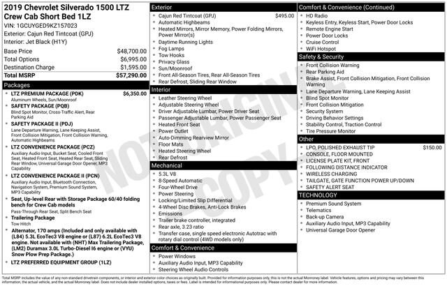 I traded up from a 2017 (which was already a great truck!) to a 2019 and wow what an improvement! I have the 5.3 with 8 speed tranny, which is smooth shifting, super quiet ride, etc, etc. Chevy as the controls and buttons all figured out nicely for easy of use. The backseat of this crew cab is even bigger than the previous model; its so big the kids can almost play football back there. Definitely another great value from Chevy. Minor irksome points include the goofy tilt/telescoping steering wheel. The previous model had a simply stalk that allowed easy up/down but the 2019 uses a goofball 'Japanese style' system, which is ery annoying and cumbersome to use. Also missing the ashtray (not for smoking but for storing small items like trailer keys, chapstick, and stuff). Also, they took away the third cup holder in the front/center, which is also annoying since I always have two different drinks while my passenger also has her own. But everything else is awesome and absolutely love this truck!