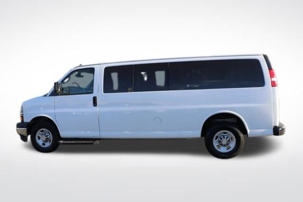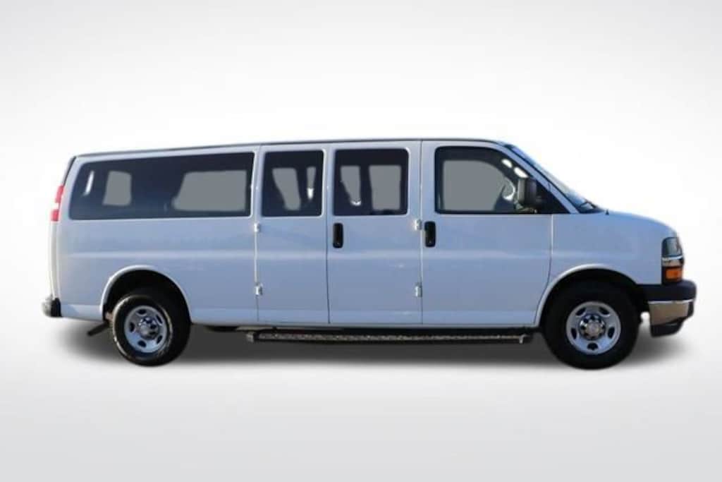 We Buy cars- Fast, Fair and Easy This 2020 Summit White Chevrolet Express 3500 LT 15 RWD is well equipped and includes these features and benefits: Chrome Appearance Package (Chrome Grille and Front & Rear Chrome Bumpers w/Step-Pad), ABS brakes, Compass, Electronic Stability Control, Emergency communication system, Illuminated entry, Low tire pressure warning, Remote Keyless Entry, Remote keyless entry, Traction control, 12-Passenger Seating (2-3-3-4 Seating Config), 16 x 6.5 Steel Wheels, 2 Speakers, 3.42 Rear Axle Ratio, 3rd row seats: bench, 4-Wheel Disc Brakes, 4th-Row Bench Seat, Air Conditioning, AM/FM radio, AM/FM Stereo w/MP3 Player, Bumpers: chrome, Custom Cloth Seat Trim, Delay-off headlights, Deluxe Console w/Swing Out Storage Bin, Driver door bin, Driver vanity mirror, Driver's Seat Mounted Armrest, Dual front impact airbags, Dual front side impact airbags, Exterior Parking Camera Rear, Forward Collision Alert, Front anti-roll bar, Front Bucket Seats, Front reading lights, Front wheel independent suspension, Full-Floor Color-Keyed Carpeting, Fully automatic headlights, Lane Departure Warning System, Occupant sensing airbag, Overhead airbag, Panic alarm, Passenger cancellable airbag, Passenger door bin, Passenger seat mounted armrest, Passenger vanity mirror, Power steering, Power windows, Rear air conditioning, Rear reading lights, Reclining Front Bucket Seats w/Inboard Armrests, Security system, Speed control, Tachometer, Theft Alarm Notification, Tilt steering wheel, Trip computer, Variably intermittent wipers, Voltmeter, and Wheel Trim w/Chrome Center Caps.