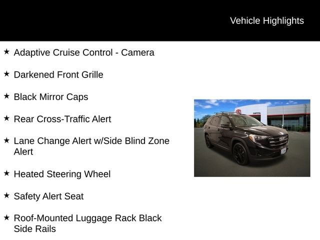 6-Way Power Front Passenger Seat, Adaptive Cruise Control - Camera, Black GMC Center Caps w/Black GMC Lettering, Black Mirror Caps, Darkened Front Grille, Driver Alert Package I, Elevation Edition, Hands-Free Rear Power Programmable Liftgate, Heated Steering Wheel, Lane Change Alert w/Side Blind Zone Alert, Memory Package, Preferred Package, Rear Cross-Traffic Alert, Rear Park Assist, Roof-Mounted Luggage Rack Black Side Rails, Safety Alert Seat, Universal Home Remote, Wheels: 19 x 7.5 Gloss Black Painted Aluminum.
