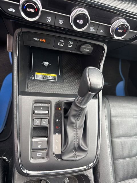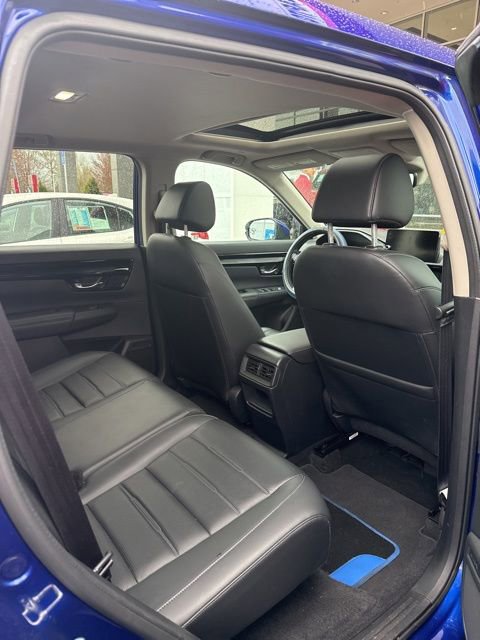Exterior highlights include the striking blue paint, body-colored bumpers, and a sporty rear spoiler, giving the CR-V a bold and dynamic presence on the road. The 18-inch alloy wheels and power-folding side mirrors with turn signal indicators add the perfect finishing touches to this impressive package.