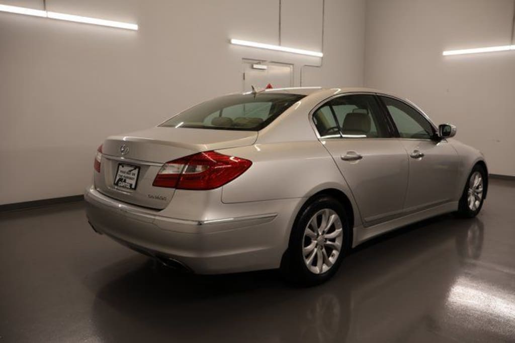 We Buy cars- Fast, Fair and Easy This 2013 Platinum Metallic Hyundai Genesis 3.8 RWD is well equipped and includes these features and benefits: Option Group 01 (4-Wheel Disc Brakes w/Brake Assist, Acoustic Laminated Windshield & Front Windows, Advanced Dual Front Airbags, Automatic Headlights, Bluetooth® Hands-Free Phone System, Carpeted Floor Mats & Cargo Net, Compass, Dual Automatic Temperature Control, Electrochromic Auto-Dimming Inside Rear-View Mirror, Electroluminescent Gauge Cluster, Electronic Active Front Head Restraints, Electronic Stability Control, Front & Rear Independent 5-Link Suspension, Headlight LED Accents / Fog Lights, Heated Dual Power Outside Mirrors, HomeLink Integrated Transceiver, Leather-Wrapped Tilt Steering Wheel, Power Windows w/Front Auto Up/Down, Proximity Key w/Push-Button Start, SACHS Amplitude Selective Damping Shock Absorbers, and Steering-Wheel-Mounted Audio & Cruise Controls), Cashmere Leather, 17 x 7.0J 10-Spoke Aluminum Alloy Wheels, 4-Wheel Disc Brakes, 7 Speakers, ABS brakes, Air Conditioning, Alloy Wheel Locks, Alloy wheels, AM/FM radio: SiriusXM, AM/FM/CD/MP3 Audio System, Anti-whiplash front head restraints, Auto-dimming Rear-View mirror, Automatic temperature control, Bodyside moldings, Brake assist, Bumpers: body-color, Cargo Tray, CD player, Delay-off headlights, Driver door bin, Driver vanity mirror, Dual front impact airbags, Dual front side impact airbags, Four wheel independent suspension, Front anti-roll bar, Front Bucket Seats, Front Center Armrest w/Storage, Front dual zone A/C, Front fog lights, Front reading lights, Fully automatic headlights, Garage door transmitter: HomeLink, Heated door mirrors, Heated front seats, Illuminated entry, Leather Seating Surfaces, Leather steering wheel, Low tire pressure warning, Mud/Splash Guards, Occupant sensing airbag, Outside temperature display, Overhead airbag, Overhead console, Panic alarm, Passenger door bin, Passenger vanity mirror, Power door mirrors, Power driver seat, Power Heated Front Bucket Seats, Power passenger seat, Power steering, Power windows, Rear anti-roll bar, Rear reading lights, Rear seat center armrest, Rear side impact airbag, Rear window defroster, Remote keyless entry, Security system, Speed control, Speed-sensing steering, Speed-Sensitive Wipers, Steering wheel mounted audio controls, Tachometer, Tilt steering wheel, Traction control, Trip computer, Turn signal indicator mirrors, and Variably intermittent wipers.