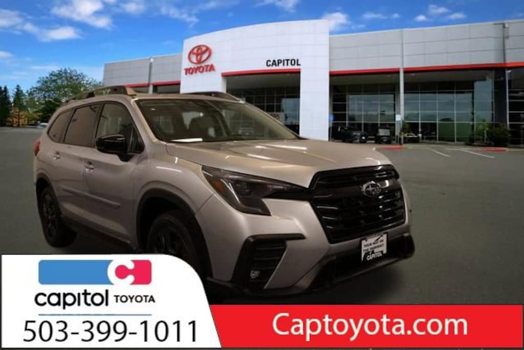 We Buy cars- Fast, Fair and Easy This 2025 Ice Silver Metallic Subaru Ascent Onyx Edition Touring AWD is well equipped and includes these features and benefits: Onyx Package (All-Weather Floor Liners, Auto-Dimming Exterior Mirror w/Approach Light, Black Chrome Rear Bumper Cover, Cargo Tray, LED Upgrade, and Splash Guards), Standard Model, 14 Speakers, 3rd row seats: bench, 4-Wheel Disc Brakes, ABS brakes, Air Conditioning, Alloy wheels, AM/FM radio: SiriusXM with 360L, Apple CarPlay & Android Auto, Auto High-beam Headlights, Auto-dimming Rear-View mirror, Automatic temperature control, Black Wheel Lug Nut & Lock Set, Brake assist, Bumpers: body-color, Compass, Delay-off headlights, Driver door bin, Driver vanity mirror, Dual front impact airbags, Dual front side impact airbags, Electronic Stability Control, Emergency communication system: MySubaru Safety (3-year free trial), Exterior Parking Camera Rear, Four wheel independent suspension, Front anti-roll bar, Front Bucket Seats, Front Center Armrest, Front dual zone A/C, Front fog lights, Front reading lights, Fully automatic headlights, Garage door transmitter: HomeLink, harman/kardon® Speakers, Heated & Ventilated Front Bucket Seats, Heated door mirrors, Heated front seats, Heated rear seats, Heated steering wheel, HVAC memory, Ice Silver Metallic Body Side Molding, Illuminated entry, Knee airbag, Leather Shift Knob, Leather steering wheel, Low tire pressure warning, Memory seat, Navigation System, Occupant sensing airbag, Outside temperature display, Overhead airbag, Overhead console, Panic alarm, Passenger door bin, Passenger vanity mirror, Perforated Nappa Leather-Trimmed Upholstery, Power door mirrors, Power driver seat, Power Liftgate, Power moonroof, Power passenger seat, Power steering, Power windows, Radio data system, Radio: Subaru 11.6 Multimedia System w/Navigation, Rain sensing wipers, Rear air conditioning, Rear anti-roll bar, Rear reading lights, Rear window defroster, Rear window wiper, Reclining 3rd row seat, Remote keyless entry, Security system, Speed control, Speed-sensing steering, Split folding rear seat, Spoiler, Steering wheel mounted audio controls, Tachometer, Telescoping steering wheel, Tilt steering wheel, Traction control, Trailer Hitch, Trip computer, Turn signal indicator mirrors, Variably intermittent wipers, Ventilated front seats, and Wheels: 20 x 7.5 J Aluminum Alloy w/Black Finish.