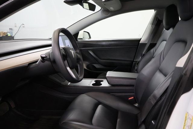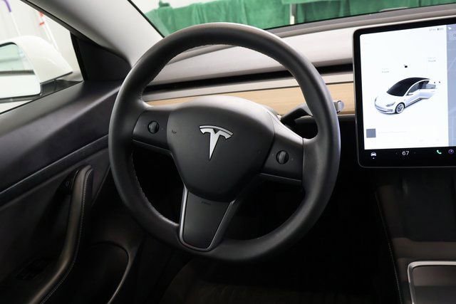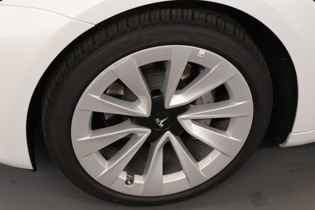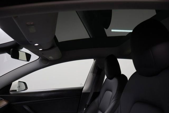 The sleek, aerodynamic exterior of this Model 3 is complemented by the striking white paint, which exudes a sense of modern sophistication. The 18-inch Aero wheels further enhance the vehicle's striking appearance, while the auto-dimming mirrors, heated side mirrors, and rain-sensing wipers provide added convenience and safety.