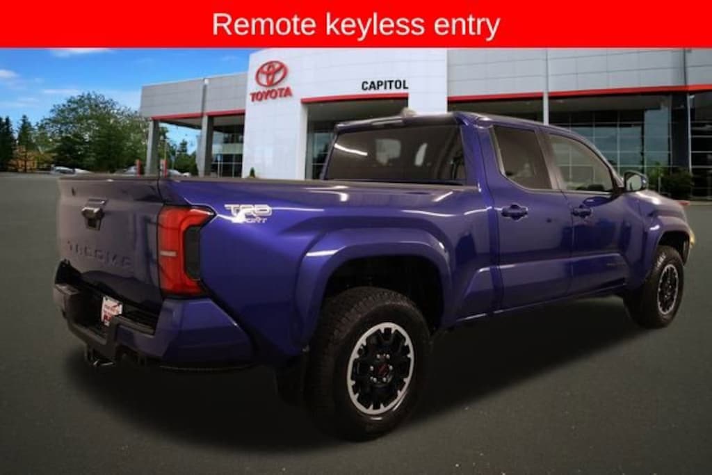 We Buy cars- Fast, Fair and Easy This 2024 Blue Crush Metallic Toyota Tacoma TRD Sport 4WD is well equipped and includes these features and benefits: ABS brakes, Alloy wheels, Electronic Stability Control, Heated door mirrors, Illuminated entry, Low tire pressure warning, Remote keyless entry, Traction control, 3.583 Axle Ratio, 4-Wheel Disc Brakes, 6 Speakers, Air Conditioning, AM/FM radio: SiriusXM, Anti-whiplash front head restraints, Apple CarPlay/Android Auto, Auto High-beam Headlights, Auto-dimming Rear-View mirror, Automatic temperature control, Brake assist, Bumpers: body-color, Driver door bin, Driver vanity mirror, Dual front impact airbags, Dual front side impact airbags, Emergency communication system: Safety Connect (1-year trial), Exterior Parking Camera Rear, Fabric Seat Trim (FE), Four wheel independent suspension, Front anti-roll bar, Front Bucket Seats, Front Center Armrest, Front fog lights, Front reading lights, Fully automatic headlights, Knee airbag, Leather Shift Knob, Leather steering wheel, Occupant sensing airbag, Outside temperature display, Overhead airbag, Overhead console, Panic alarm, Passenger door bin, Passenger vanity mirror, Power door mirrors, Power steering, Power windows, Radio: 8 Toyota Audio Multimedia, Rear step bumper, Rear window defroster, Security system, Speed control, Speed-sensing steering, Split folding rear seat, Steering wheel mounted audio controls, Tachometer, Telescoping steering wheel, Tilt steering wheel, Trip computer, Turn signal indicator mirrors, Variably intermittent wipers, and Wheels: 18 TRD Sport Alloy.