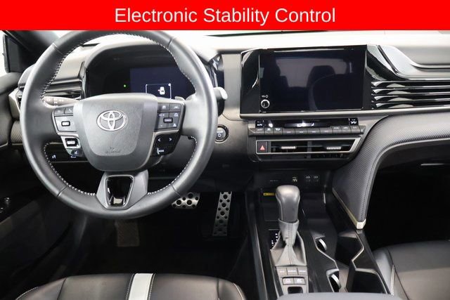 The Camry SE also comes equipped with a host of other premium amenities, including front dual-zone air conditioning, remote keyless entry, traction control, ABS brakes, and electronic stability control. Heated door mirrors, illuminated entry, and alloy wheels add to the vehicle's sophisticated style.