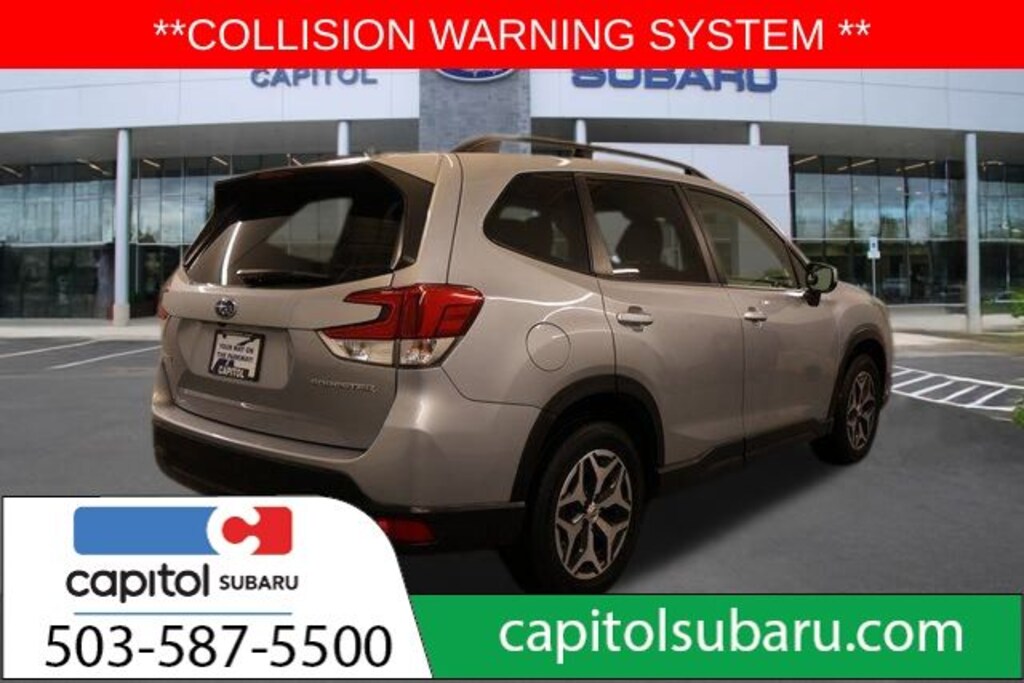 We Buy cars- Fast, Fair and Easy This 2021 Ice Silver Metallic Subaru Forester Premium AWD is well equipped and includes these features and benefits: Standard Model, 3.70 Axle Ratio, 4-Wheel Disc Brakes, 6 Speakers, ABS brakes, Air Conditioning, Alloy wheels, AM/FM radio: SiriusXM, Auto High-beam Headlights, Automatic temperature control, Brake assist, Bumpers: body-color, CD player, Cloth Upholstery, Driver door bin, Driver vanity mirror, Dual front impact airbags, Dual front side impact airbags, Electronic Stability Control, Emergency communication system: STARLINK Safety and Security (Subscription Required), Exterior Parking Camera Rear, Four wheel independent suspension, Front anti-roll bar, Front Bucket Seats, Front Center Armrest, Front fog lights, Front reading lights, Fully automatic headlights, Heated door mirrors, Heated Front Bucket Seats, Heated front seats, Illuminated entry, Knee airbag, Low tire pressure warning, Occupant sensing airbag, Outside temperature display, Overhead airbag, Overhead console, Panic alarm, Passenger door bin, Passenger vanity mirror, Power door mirrors, Power driver seat, Power moonroof: Panoramic, Power steering, Power windows, Radio data system, Radio: Subaru Starlink 6.5" Multimedia Plus System, Rear anti-roll bar, Rear seat center armrest, Rear window defroster, Rear window wiper, Remote keyless entry, Roof rack: rails only, Security system, Speed control, Speed-sensing steering, Split folding rear seat, Spoiler, STARLINK/Apple CarPlay/Android Auto, Steering wheel mounted audio controls, Tachometer, Telescoping steering wheel, Tilt steering wheel, Traction control, Trip computer, Variably intermittent wipers, and Wheels: 17" x 7.0J Black Machine Finish Alloy.